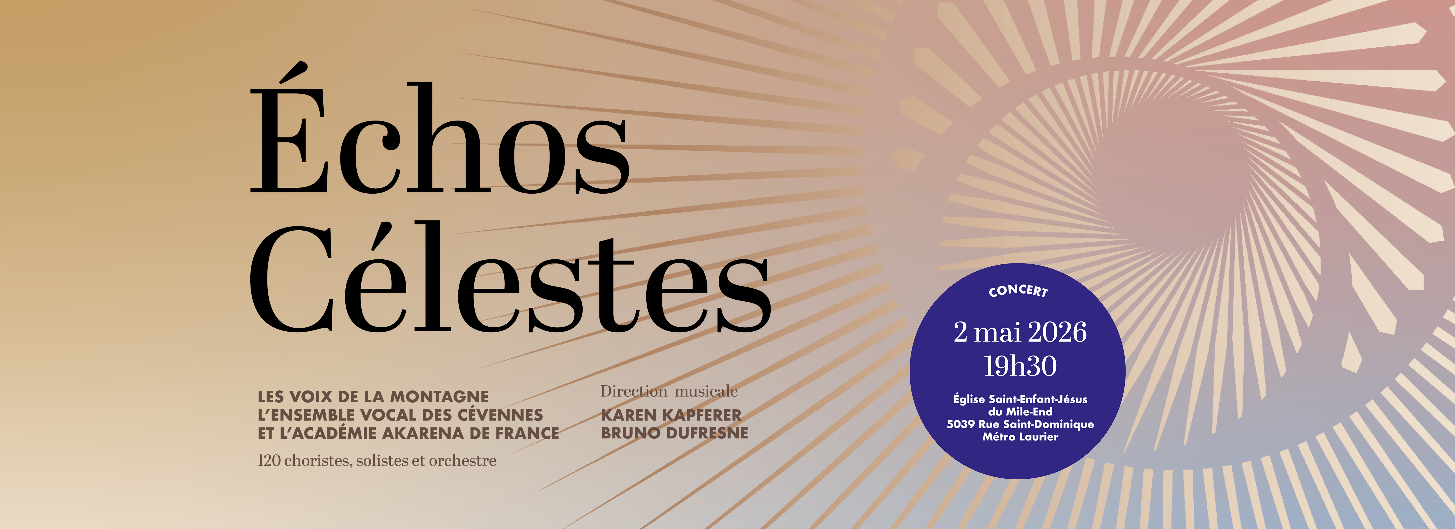 le samedi 2 mai, à 19h30, à l’Église St-Enfant-Jésus à Montréal.